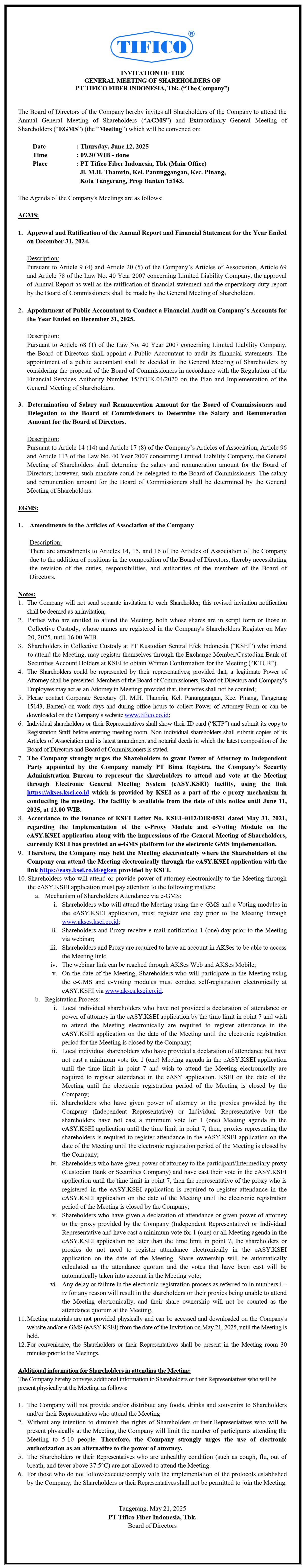 Invitation of General Meeting of Shareholders June 12, 2025